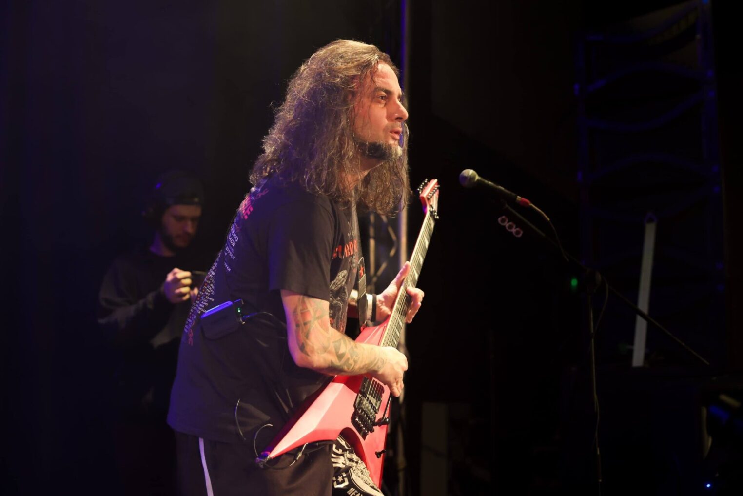 Intro lanzada, potentes fogonazos de luces azules y rojas son disparados y, acto seguido, ingresan los protagonistas de la noche para rodar un engranaje de carácter eterno y que bien podría asemejar a un motor de movimiento continuo. Rápidamente, con la misma velocidad que imprime el grupo a su directo en los primeros compases de “Clockwork”, el respetable le sigue con animados circle pit para dejar claro que esa sería la tónica de todo el show. Una comunión perfecta entre los cuatro sacerdotes del thrash metal patrio y sus feligreses.