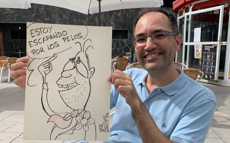 El recién elegido Premio Canarias de Comunicación, José Luis Padilla Padylla se encuadra en el grupo de autores que ejercen de viñetistas y que por lo tanto deben hacer frente a su trabajo de forma diaria, con el imaginable estrés que todo ello implica. Por eso su rutina está muy marcada: “Por la mañana, a primerísima hora, a lo mejor miro un poco la portada de los periódicos y ligeramente las noticias del día pero lo cierto es que todavía no están muy perfiladas, a no ser que haya pasado algo muy, muy gordo. Es a partir del mediodía cuando la cosa está ya mucho más afinada, luego empieza la tarde y veo con más detenimiento lo que ya se está convirtiendo en importante. El problema es que a esa hora tengo que ejercer de padre y todo se complica hasta que acuesto a los niños y la casa está más relajada”. El estrés al que se enfrenta, según indica, “viene dado porque debo entregar la viñeta a una hora concreta, pero claro, durante todo ese tiempo he ido trabajando mentalmente algunas cosas y he podido ir definiendo la noticia, el perfil o el enfoque que le voy a dar. En lo que menos suelo tardar es en hacer el dibujo porque mi estilo no es extremadamente complicado, es muy simple y a veces consiste en un solo personaje y poco más. Sé que en el mundo de las viñetas se agradece que transmitas un mensaje por medio de un buen dibujo, pero no es mi caso, los míos son super simples pero intentando que expresen mucho. A veces es cierto que cuando se acerca la hora de entregar la viñeta y tengo dudas digo: Mira vamos a tirar por ésta y que sea lo que Dios quiera”.