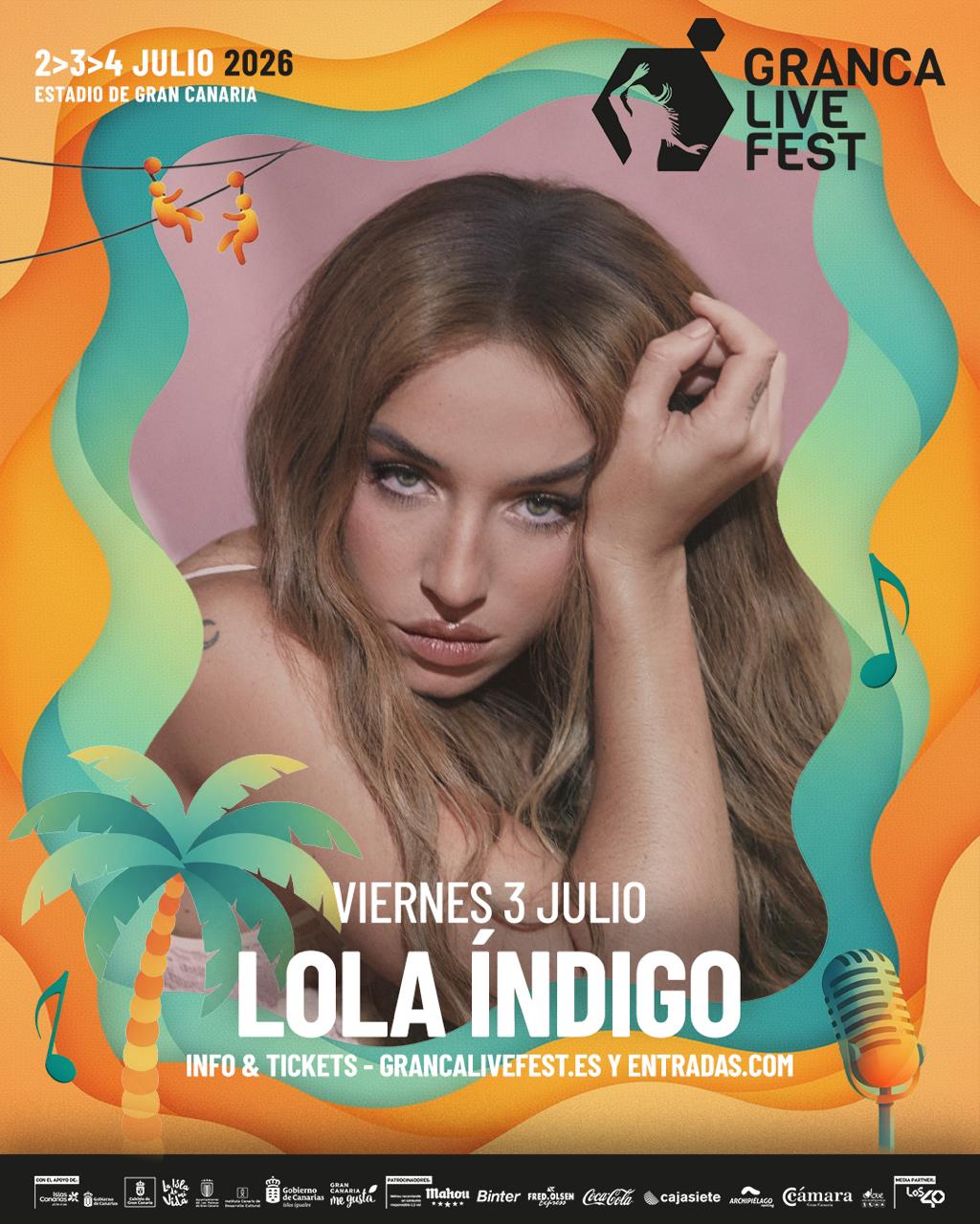 15 de diciembre de 2025 — Lola Índigo, una de las artistas más influyentes y reconocidas del pop español actual, será la primera confirmación oficial del viernes del Granca Live Fest 2026, cuya jornada se celebrará el 3 de julio.