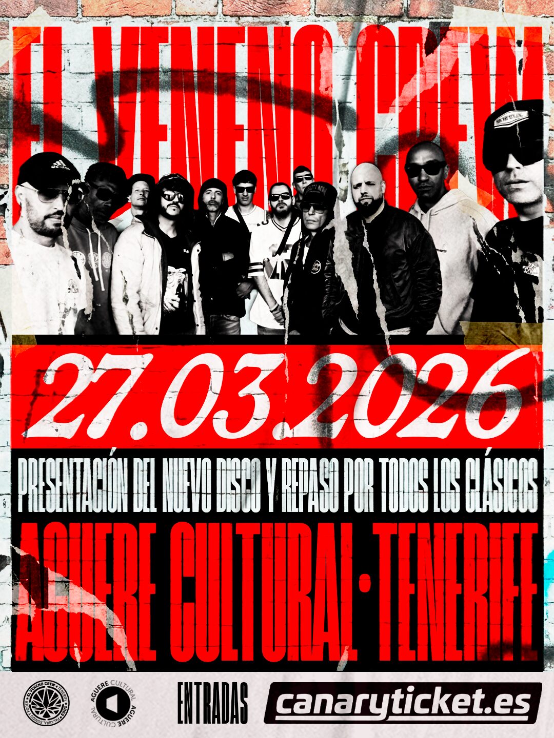 Nacido en La Laguna (Tenerife) en 2003 como respuesta a la necesidad de una voz propia en el rap isleño, El Veneno Crew se consolidó desde sus inicios como un colectivo único: una formación coral que llegó a sumar once MC’s y dos DJ’s, con una enorme riqueza estilística que abarca desde las rimas más crudas del rap underground hasta influencias del reggae y el dancehall.