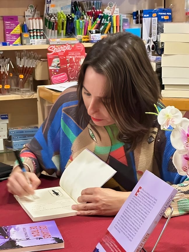 A alguien que no ha leído Los Llanos de Troya, le diría que es una novela con un ritmo trepidante, que es cortita la lectura y la letra es grande (para los que ya empezamos a picar presbicia). Y que trata sobre una prostituta transexual que aparece muerta en la avenida Los Llanos de Troya del sur de Tenerife. Diana Uribe, que es la inspectora del caso, junto con su equipo de Policía Nacional tienen que investigar, y van descubriendo una corruptela política y diferentes bajos fondos de la isla…