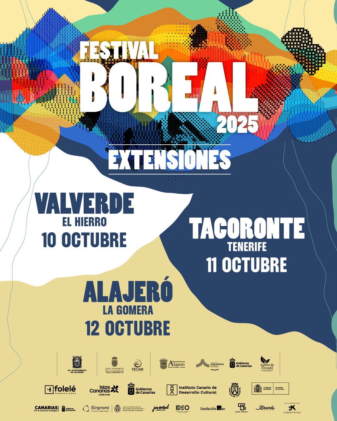 El Festival Boreal se expande este fin de semana a distintos puntos de las Islas Canarias con tres nuevas paradas que tendrán lugar en Valverde (El Hierro), Tacoronte  (Tenerife) y Alajeró (La Gomera). Estas extensiones del festival, de acceso libre y gratuito, acercan el espíritu de Boreal a distintos territorios del Archipiélago a través de talleres, diálogos, exposiciones y conciertos, en una programación que combina cultura, sostenibilidad e inclusión.