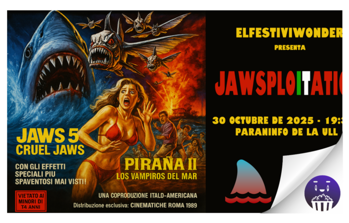 La víspera de Halloween promete emociones fuertes bajo el agua. El próximo 30 de octubre, a las 19:30 horas, el Paraninfo de la Universidad de La Laguna se convertirá en un santuario para los amantes del cine de serie B con JAWSPLOITATION, un evento organizado por ElFestiviWonder en colaboración con el festival CutreCon de Madrid, dedicado al cine más extravagante y entrañable de las últimas décadas.