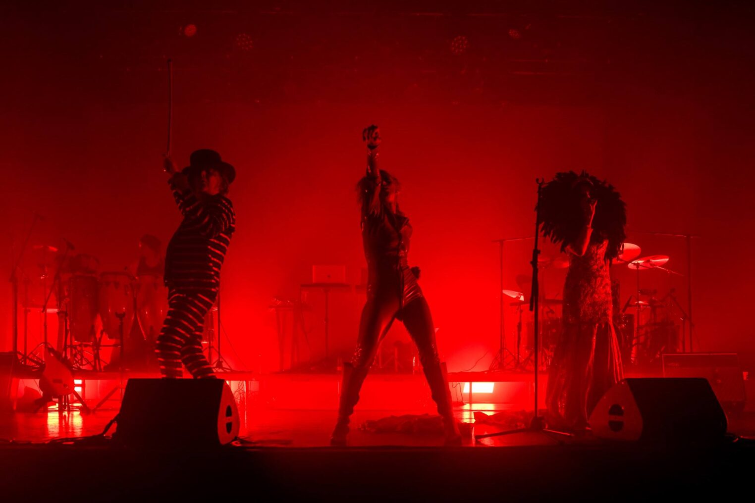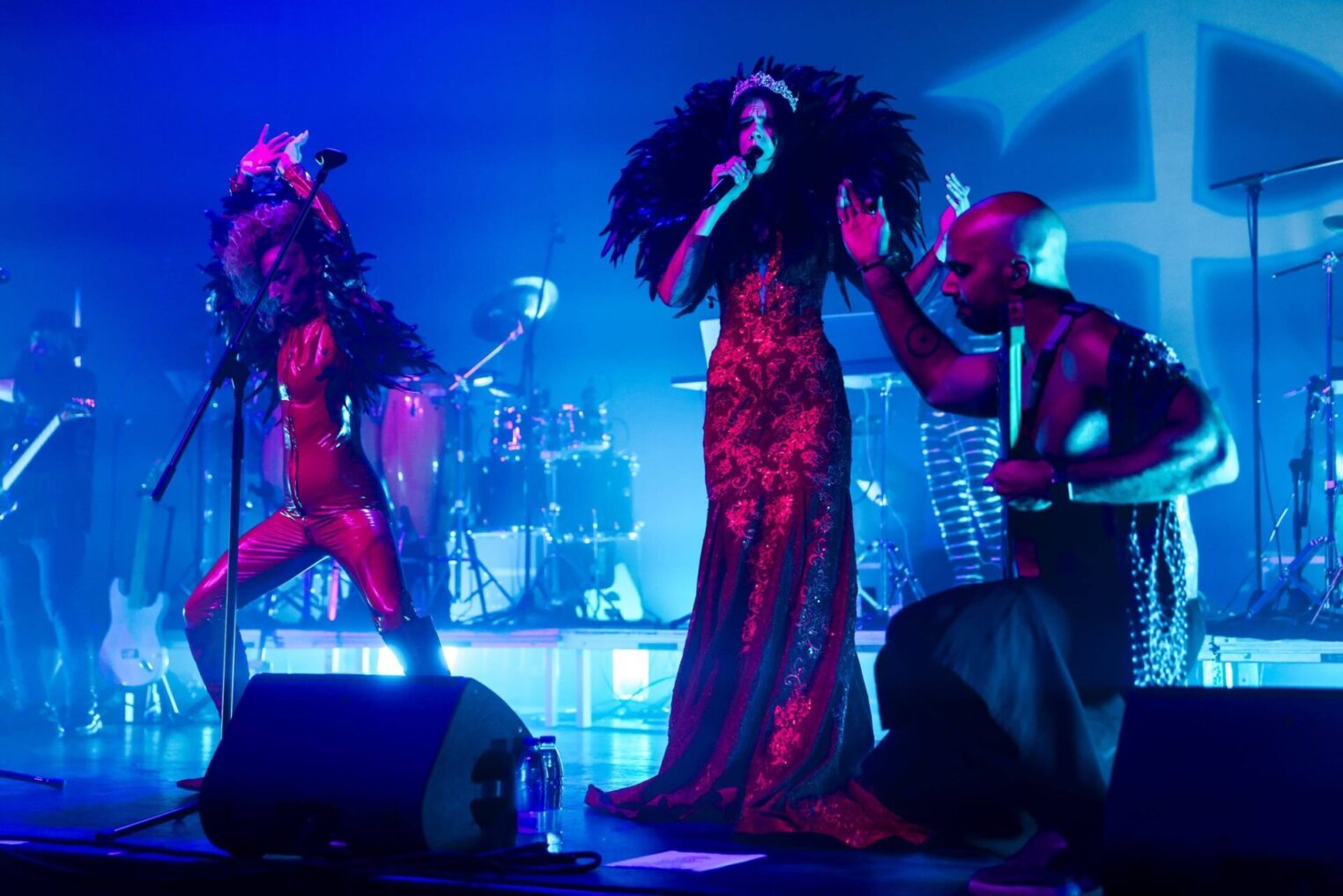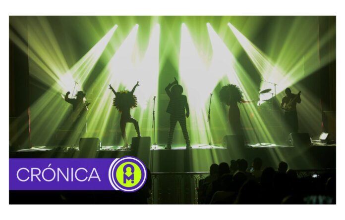 Sobre el escenario del Teatro Leal iba a tener lugar un ritual sonoro con la electrónica como unción de carácter sagrado y/o místico. Bañados en una tenue luz azul y a ambos lados del escenario se encuentran el set de batería y el compendio de percusión tribal, en el centro, elevado, los ordenadores, midis y cables de Ben cual gurú. Sale al escenario El Amir guitarra española en mano para atraparnos en una sencilla melodía en bucle tocada con maestría… a modo de obertura nos introduce de forma evocadora en el universo lleno de influencias de The Matrix. Entre sombras Ben toquetea sus equipos para paulatinamente ir entrando la electrónica en escena. Se retira Amir y entra en escena Liliana Izyk con su voz aterciopelada, la electrónica ya resuena por los altavoces del Leal. Entra Josh a aporrear su batería mientras al otro extremo del escenario se fusiona con las pieles y maderas de la percusión tribal. Vuelve Amir guitarra eléctrica en mano y su contrapartida Wigs, intercambiándose solos y líneas rítmicas. Finalmente Virma Vincelli, embutida en un mono de látex emulando a los personajes de la saga cinematográfica, irrumpe en el escenario con su danza salvaje, casi primitiva, cercana al trance, hermanada con la cultura de rave. Para este momento el escenario ya está bañado en el reconocible verde que asociamos a The Matrix.