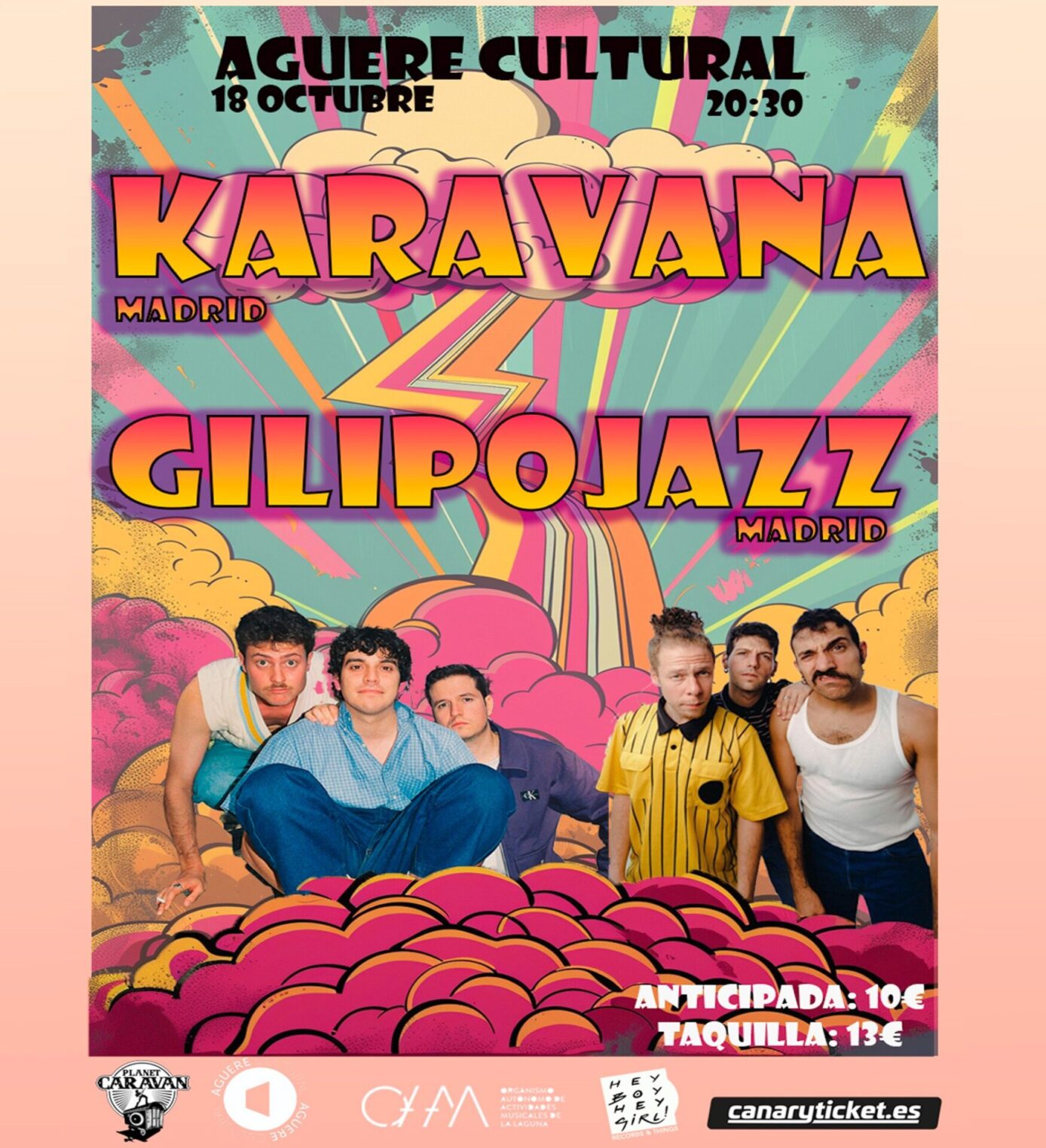 Por primera vez en Canarias, el escenario de Aguere Cultural (La Laguna) acogerá una noche inolvidable con dos de las propuestas más frescas y potentes del panorama musical español: Karavana y Gilipojazz.