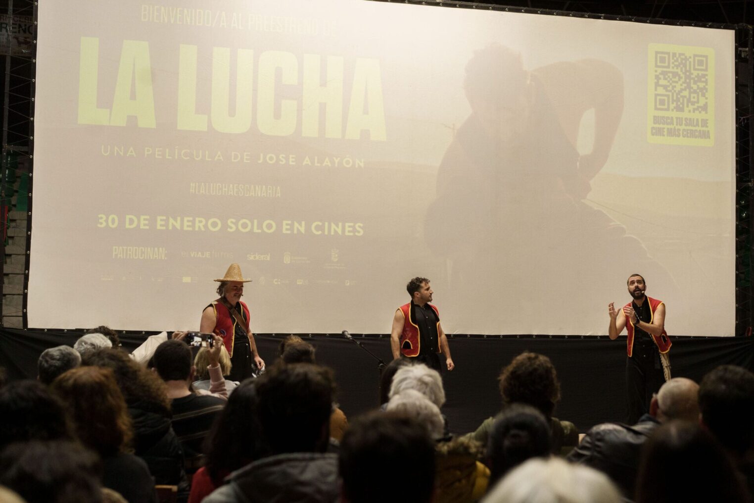 Tomasín Padrón y Yazmina Estupiñán fueron parcos, como sus personajes, pero mostraron su felicidad por participar en un proyecto que saben que ya está haciendo historia en la cultura y en el deporte ancestral en las islas. Jose Alayón pudo elevarse por encima de su emoción para detallar que “había la necesidad de contar este universo; hicimos un casting gigantesco en el que aprendimos mucho de toda la intimidad que nos contaban, de todo lo que tenían ganas de contar… Había una sensación de pertenencia, de un misterio que nos llevaba a la película”.