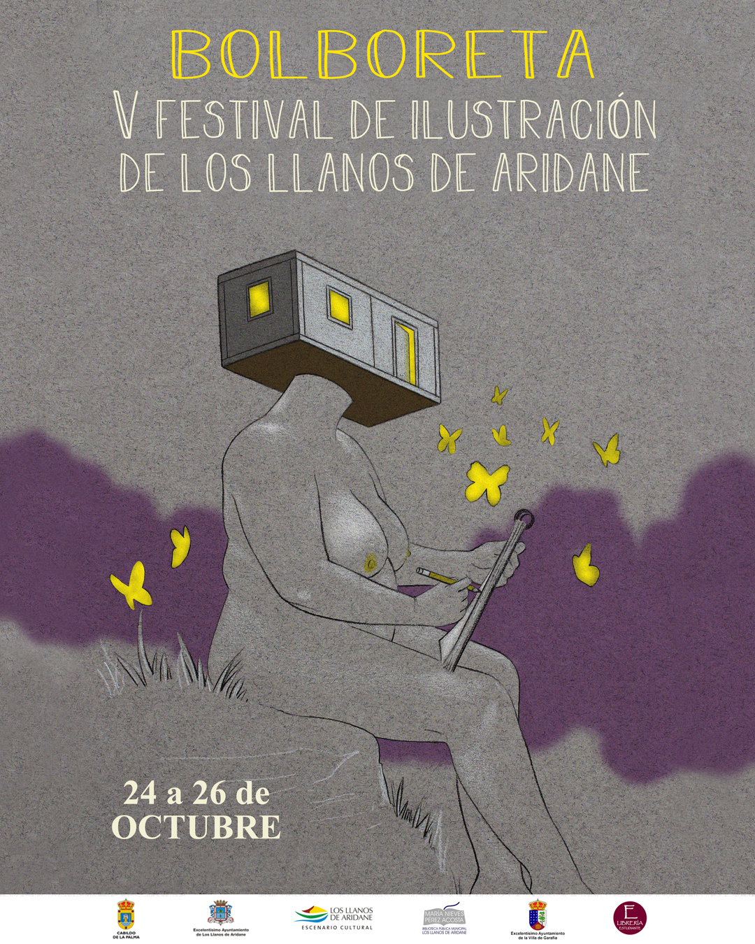 Bolboreta. V Festival Ilustrado de Los Llanos de Aridane está patrocinado por el Cabildo de La Palma, Ayuntamiento de Los Llanos de Aridane, Concejalía de Cultura de Los Llanos de Aridane, Biblioteca Pública Municipal María Nieves Acosta, Villa de Garafía y Librería Estudiante.