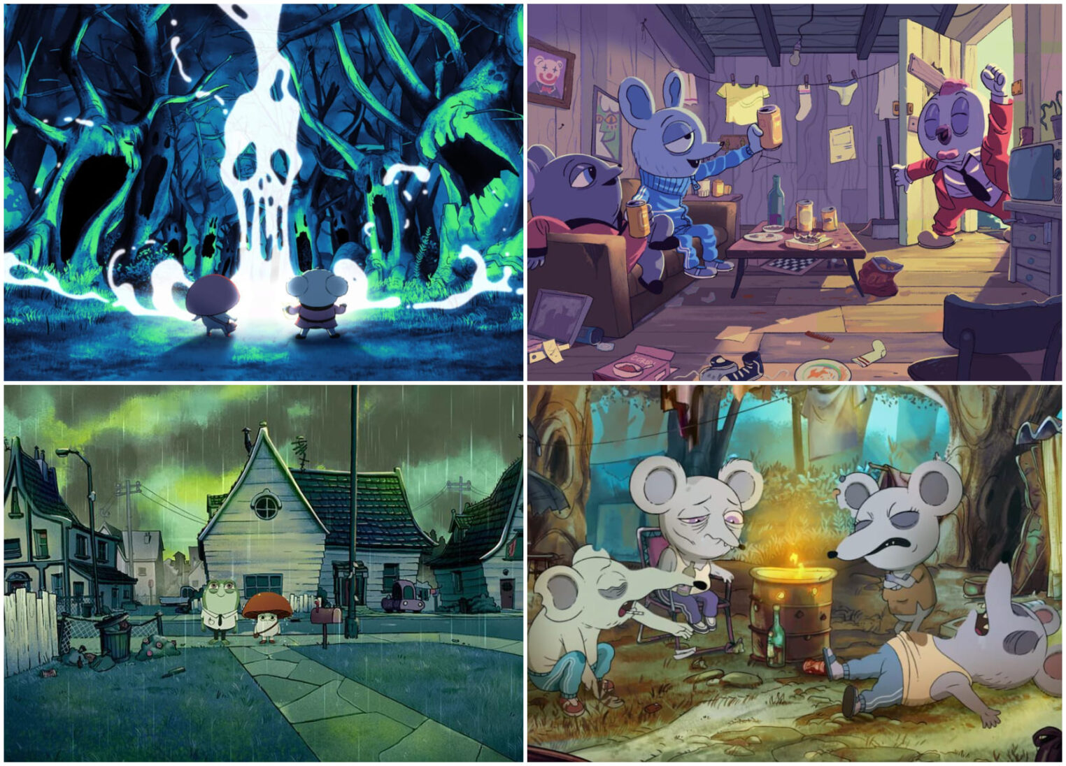 Coproducción entre las españolas María y Arnold AIE, Abano Producións, Uniko y Glow Animation, y la portuguesa Sardinha em Lata, ‘Decorado’ (2025) aborda la búsqueda de identidad en una sociedad que prioriza las apariencias, provocando el paulatino desencanto de su protagonista y vecinos en una suerte de ambiente enrarecido, irreal, y en ocasiones lisérgico (como en muchas distopías, nuestro protagonista acude a los psicofármacos para soportar su realidad).