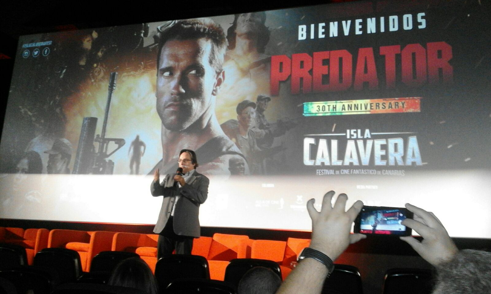 A las 17:30 se programo»Mom and Dad»,fabula negra sobre el nucleo familiar protagonizada por Nicholas Cage y Selma Blair,y a continuacion daba comienzo la gala de clausura con entrega de galardones de honor a Colin Arthur y Jack Taylor y el anuncio del palmares del concurso de cortometrajes.La gala culmino con»The Maus»,rodada parcialmente en Tenerife,y que un servidor no pudo visionar por su compromiso y obligaciones como miembro del staff..pero la traca de despedida vino con»Depredador»,en su retorno a la pantalla grande en su 30 aniversario.Sesion festiva y trasnochada pues;coronada en un coctel donde prosiguio el buen ambiente y la satisfaccion del trabajo bien hecho..pero aun quedaban un par de cartuchos.