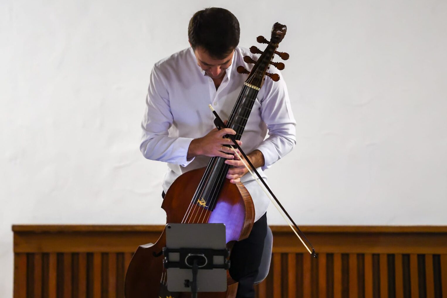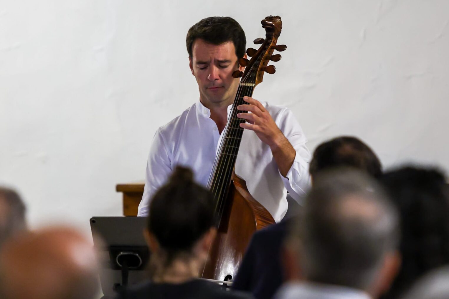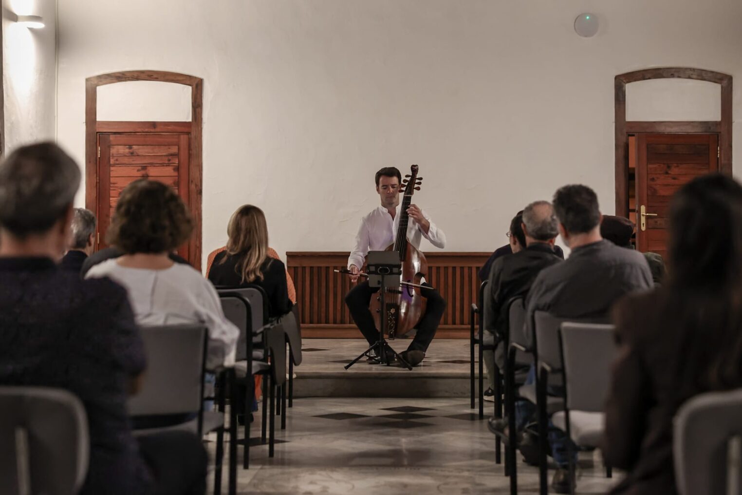 Sin grandes artilugios escénicos, una silla, un atril, el músico y el público, la dirección artística de Conrado Álvarez Fariña nos lleva en un viaje sonoro hasta finales del XVIII de manos de Alejandro Marías y su viola de gamba.
